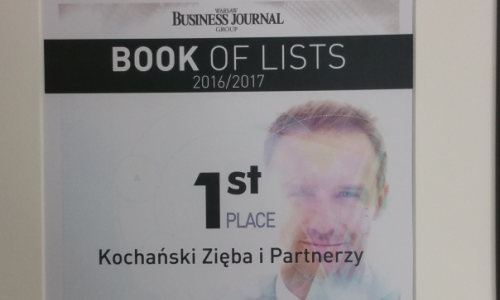 Z dumą informujemy, że w tym roku Kancelaria Kochański Zięba & Partners Sp. k. zajęła 1. miejsce w kategorii polskie firmy prawnicze.