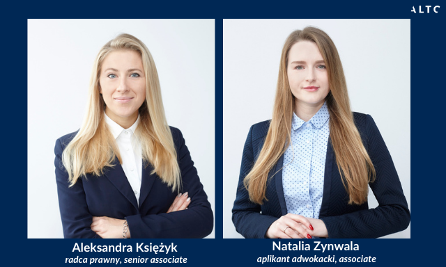 Na początku listopada ALTO Legal wzmocniła swoją praktykę prawa korporacyjnego. Do zespołu kierowanego przez mec. Tomasza Fiałka, dołączyły dwie prawniczki – Aleksandra Księżyk (radca prawny, senior associate) oraz Natalia Zynwala (aplikant adwokacki, associate).
