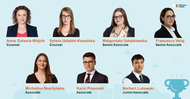 - Małgorzata Gołębiowska – Praktyka Bankowości i Finansów – radczyni prawna z ponad dziesięcioletnim doświadczeniem, specjalizuje się w finansowaniu nieruchomości, M&A i energii, prowadząc projekty z zakresu zrównoważonego rozwoju. Doktorantka, ekspertka w przygotowywaniu umów kredytowych i doradztwie regulacyjnym dla banków. Małgorzata jest ekspertem w dziedzinie project finance w obszarach związanych z energią odnawialną, wpisując się w ten sposób w strategię dekarbonizacyjną Osborne Clarke. Wiele z projektów realizowanych przez Małgorzatę ma charakter innowacyjnych i ich struktura lub charakter oparte są na pionierskich na polskim rynku typach umów.