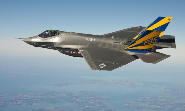 F-35 czyli Lockheed Martin F-35 Lightning II, to, według Wikipedii, amerykański jednomiejscowy, jednosilnikowy wielozadaniowy samolot myśliwski piątej generacji o obniżonej wykrywalności. Jego zadania to wykonywanie: misji bliskiego wsparcia; bombardowania precyzyjnego; misji rozpoznania; walki elektronicznej; myśliwskich zadań walki powietrznej. Samolot, zwłaszcza w wersji F-35B, czyli krótkiego startu i pionowego lądowania, może korzystać z nieprzygotowanych polowych lądowisk w terenie.